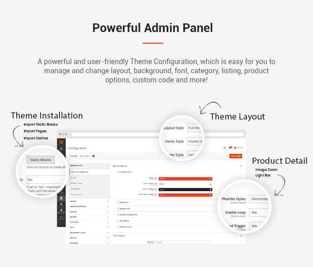 • Multiple layouts and setting options for Category page, product page