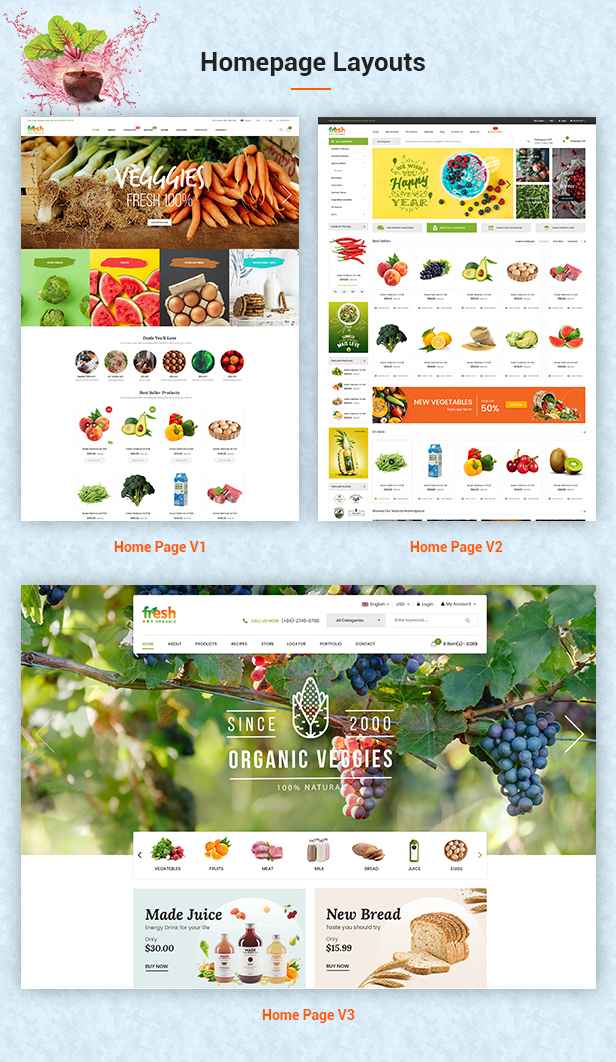 Fresh is a best Magento theme for showcasing organic products: organic food, organic cosmetic, organic medicine…