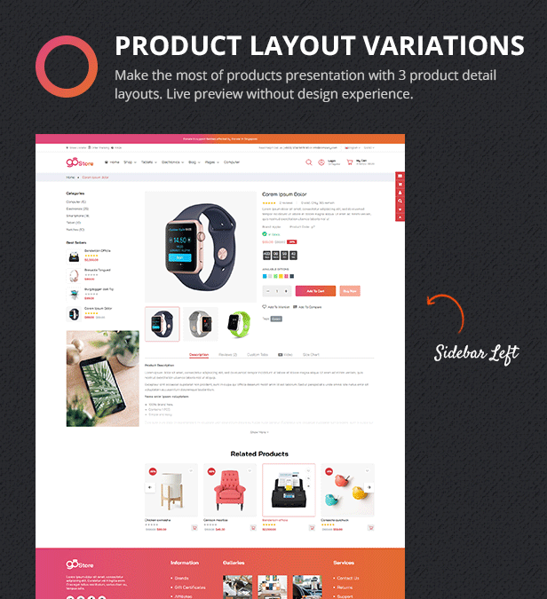 ✔️ Highly Customizable Feature: Visual page builder ready, mega menu ready, Drag & Drop features, Categories Popup, Mobile Layouts, Menu features, Pop-up and more … Besides, GoStore supports multi-vendor plugin to turn your site become marketplace with many vendors.