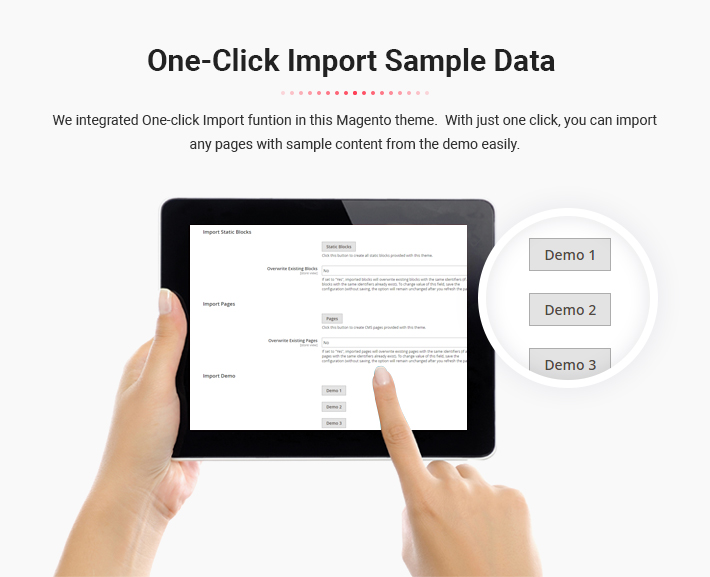 The beautiful store theme integrated many new features such as powerful admin panel, one-click import demo data, other pages and static blocks.